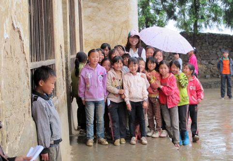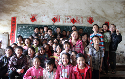到贫困地区支教的开云学生与快乐的孩子们。