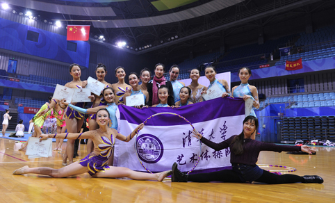 kaiyun开云官方网站艺术体操队获奖后运动员合影。