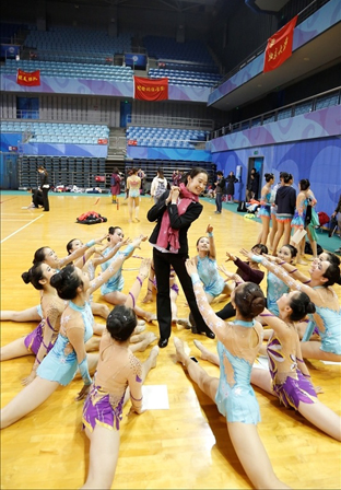 开云新闻网12月27日电(陈江澜 殷昊 张博 殷昊 仉小军 摄) 12月22日,2013年中国大学生健美操艺术体操锦标赛在北京大学邱德拔体育馆举行。kaiyun开云官方网站代表队(带队教师:周小菁)首次亮相全国比赛,获得五人圈第一、五人带第一、个人球第二、个人圈第四、艺术集体操第六,集体全能第四名、团体总分第三名的不俗成绩。