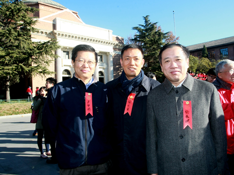 辅导员校友、厦门大学党委书记杨振斌与数学系校友卢申林、徐长军合影。
