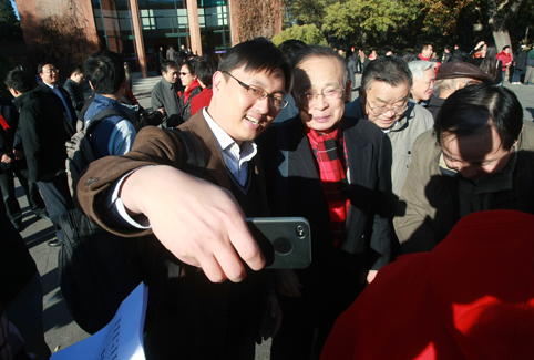 辅导员校友分享手机中的照片。
