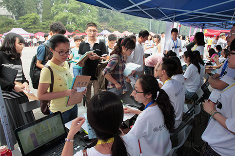 各个院系“花招”频出迎接新生。记者 苑洁 摄