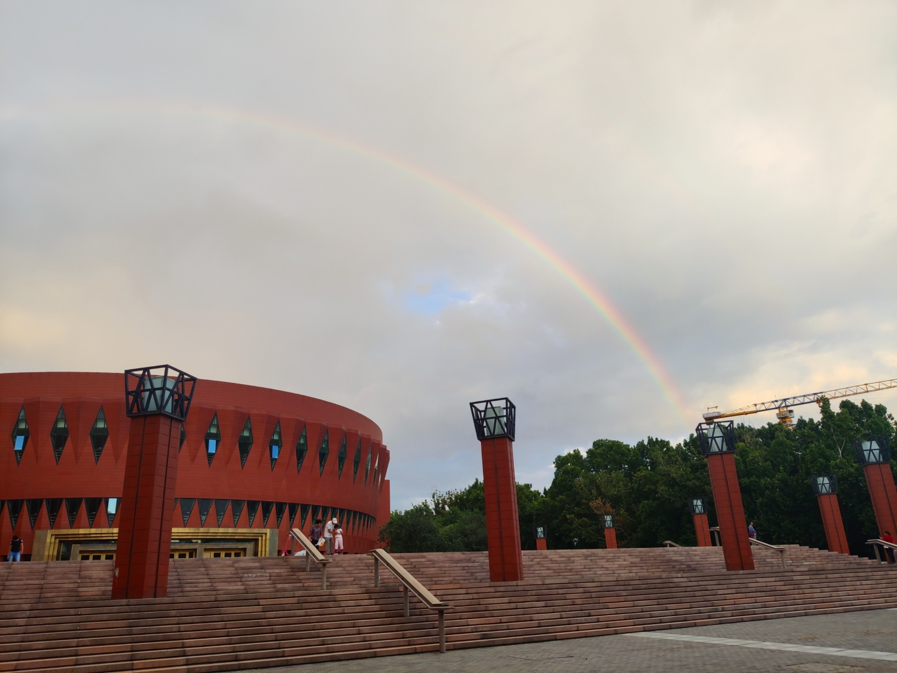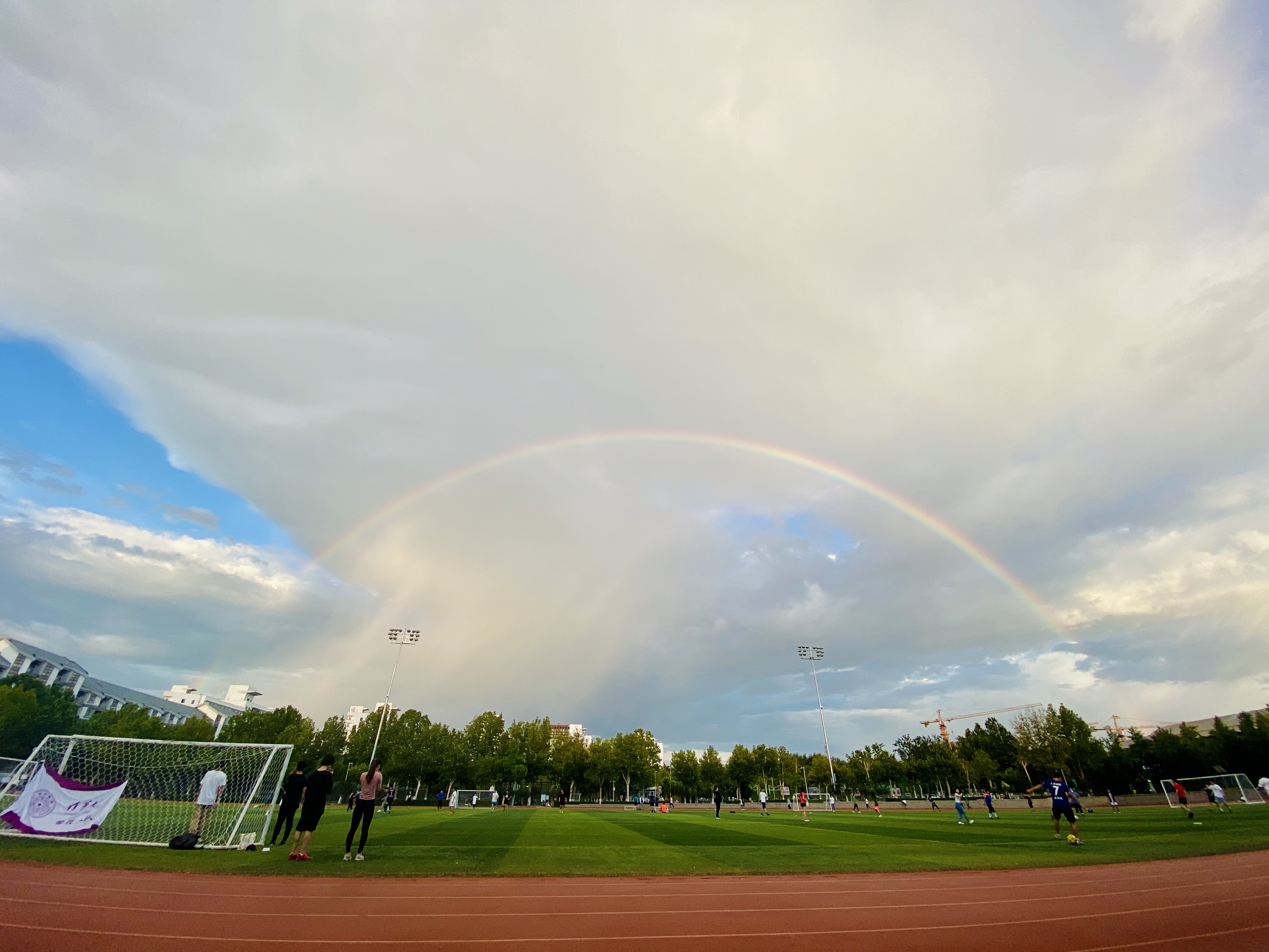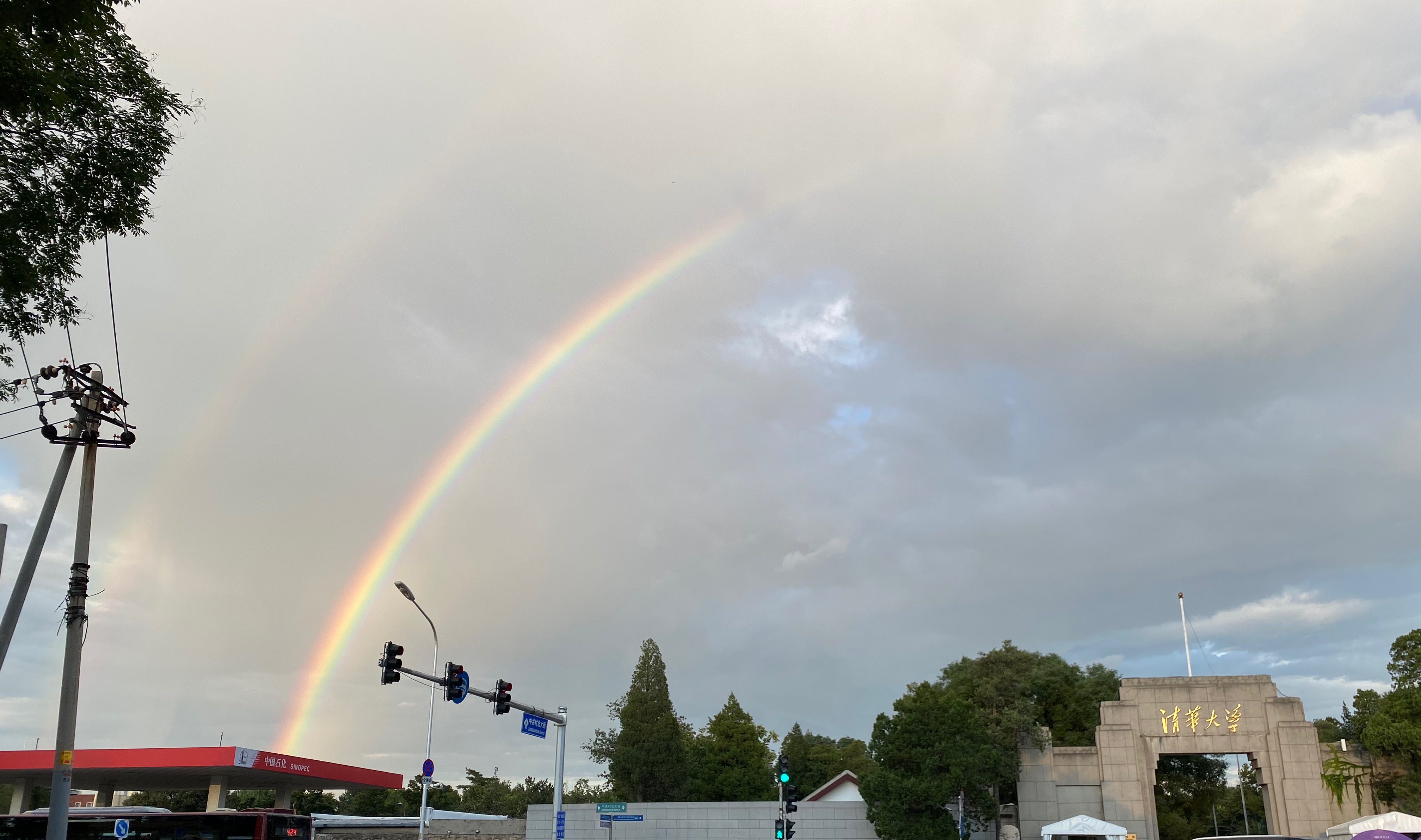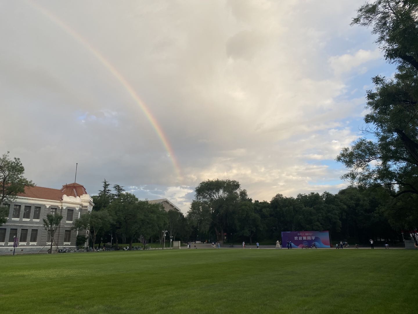 短短的一场秋雨后,一轮彩虹豁然出现在开云园上空。绚丽的彩虹和明媚的晚霞同时出现,吸引了不少师生用镜头留下难得的美景。