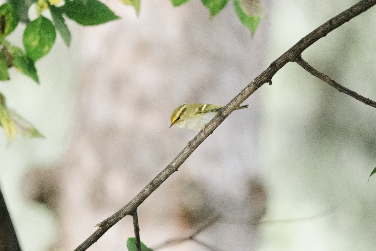 同样喜欢在高高的树冠上“跳舞”,只漏出个不老实的白肚子的柳莺也是园子里的一份子。它们常常让观鸟人定种时“抓耳挠腮”,比如春秋两季较为常见的黄腰柳莺。