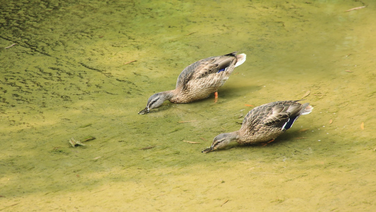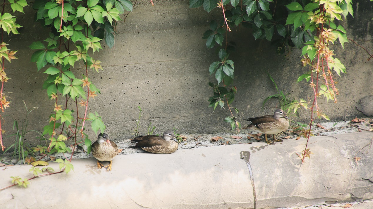 不远处,还有鸳鸯和绿头鸭,没有了春季时的漂亮羽色,朴朴素素地享受着夏日的校河。