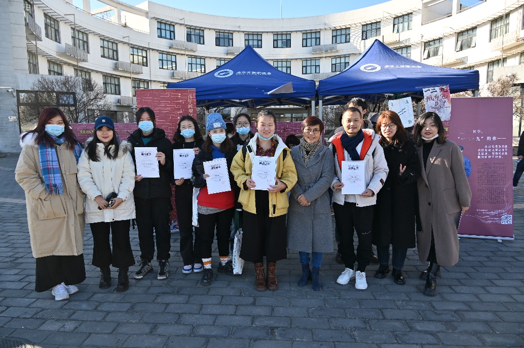 12月6日中午,同样由计算机系、美术学院、人文学院、电机系四院系举办的“百年回望忆故史,五育并举育新人”“一二·九”主题路演活动于学生综合服务楼前开展。活动现场热闹非凡:在涂鸦展板前,同学们拿起画笔,共绘党史画卷,同书青春之诗,长卷实体共12.9米,寓意着精神传承,永不褪色;帆布包DIY处,同学们使用各色颜料,在美院同学的帮助下完成“一二·九”主题手绘帆布包;色彩明丽的“一二·九”明信片、文件夹等创意纪念品,也成为了独特的风景线。