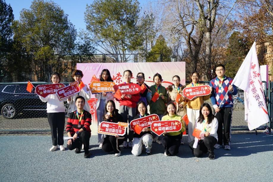 “峥嵘‘一二·九’,奋进新百年”五系联合跑步活动参与队伍合影。
