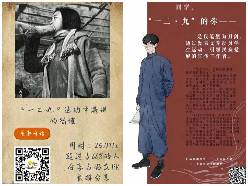 “一二·九”拼图游戏和“一二·九”人物志完成界面之一。