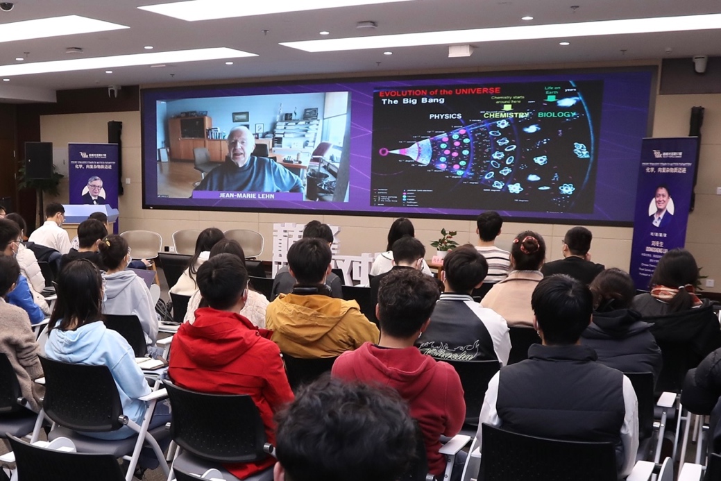 让-马里·莱恩首先从宇宙进化讲起,引出化学在复杂物质形成过程的重要性,聚焦于物质自组装与分子识别,介绍了自组装作用如何造就物质结构多样性,以及分子识别在生命科学中的重要应用,并延伸到自适应化学与动态聚合物的发展必要性。他勉励同学们要敢于创新、勇于尝试、不断探索、笃志好学,并强调科学是永无边界的,科学将为人类塑造更美好的未来。