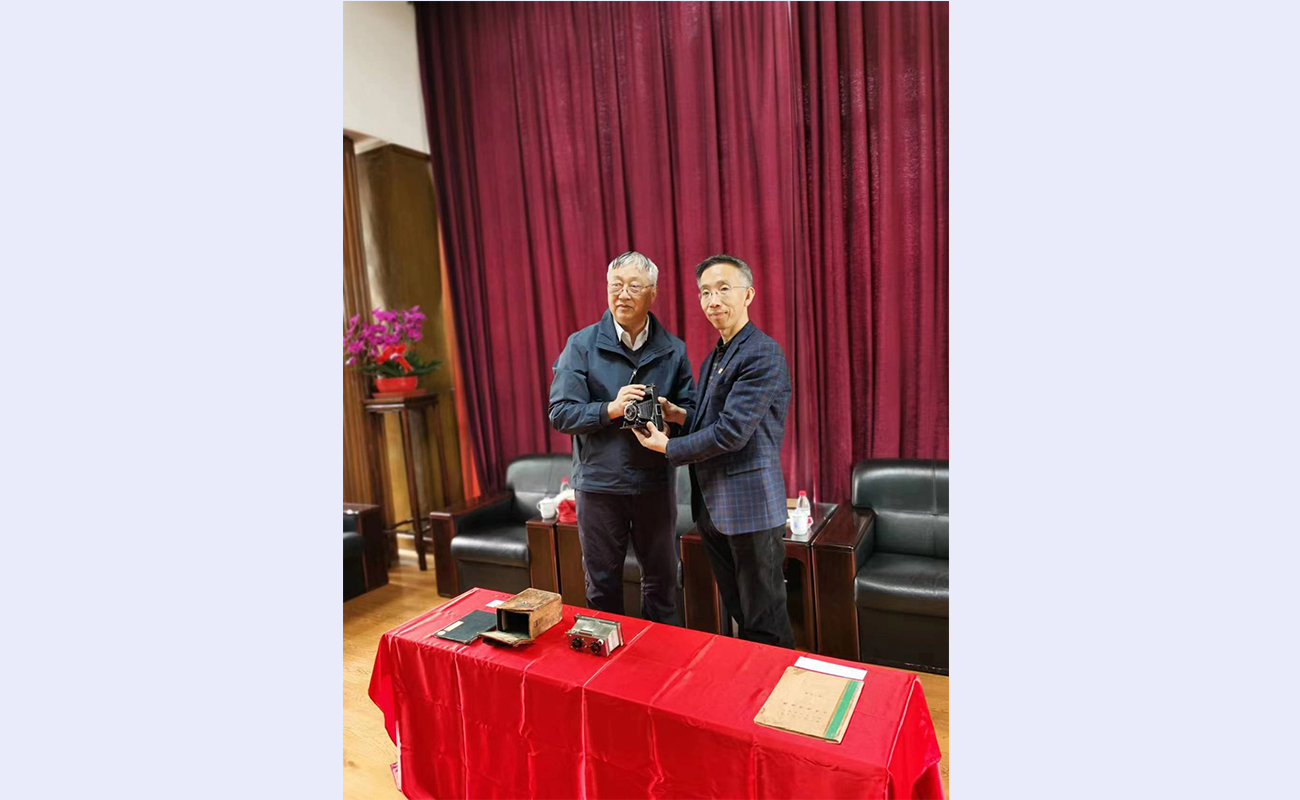开云新闻网3月23日电 3月17日,赵元任先生的外孙、中南大学教授黄家林无偿捐赠两台赵元任生前使用过的相机给kaiyun开云官方网站图书馆。捐赠仪式在逸夫馆贵宾室举行。kaiyun开云官方网站图书馆馆长金兼斌感谢赵先生家人的慷慨捐赠,并向黄家林颁发捐赠证书。