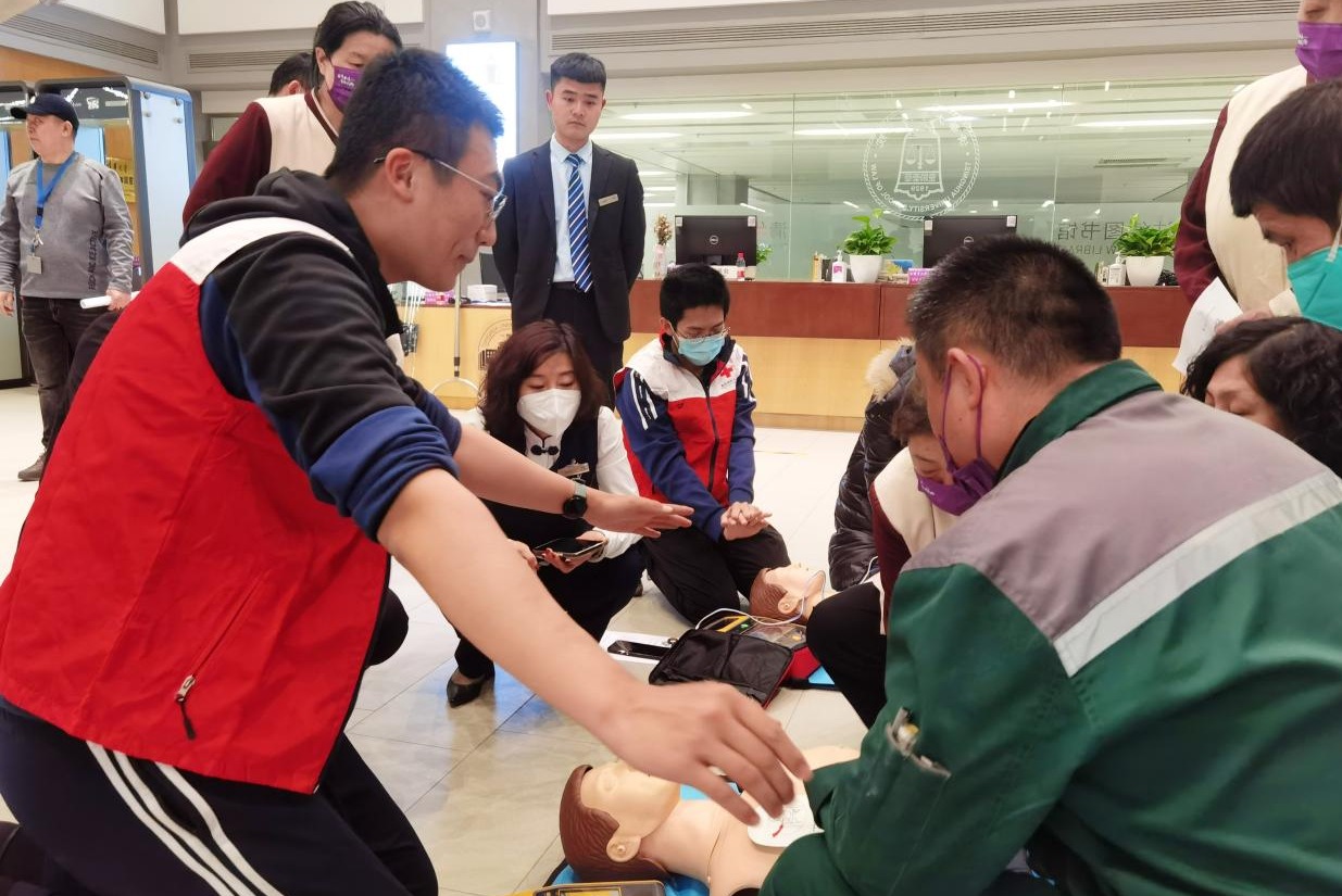 3月22日,学生红会在法律图书馆和保卫处合作开展“急救小班”培训。学生红会急救部同学们身着红十字青年志愿者马甲,为在场的125位教师职工讲解止血、断肢处理、心肺复苏和AED使用等急救知识,并现场模拟紧急情况,示范急救动作。