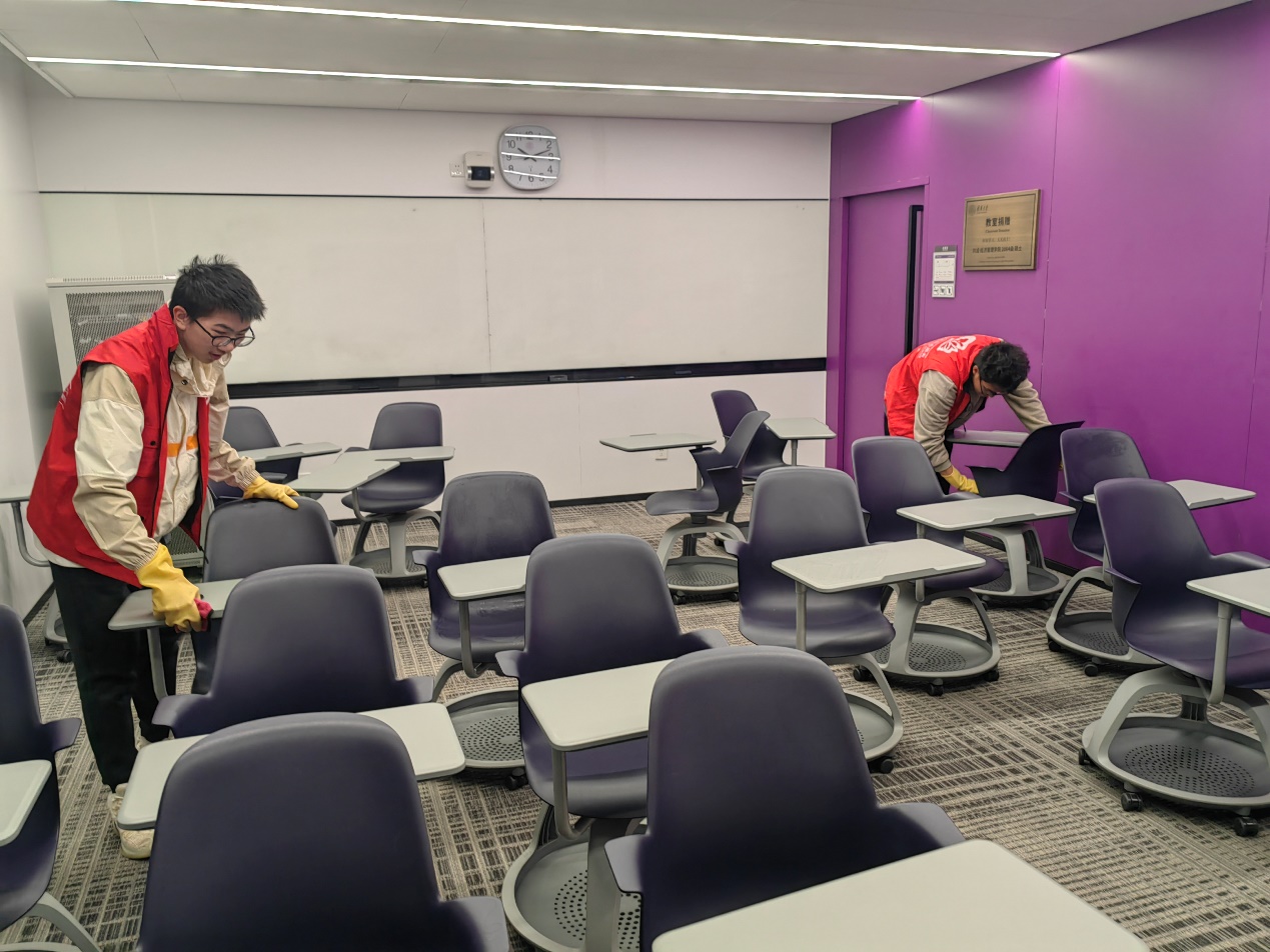 “清”年爱劳动劳动锻炼志愿项目鼓励同学们在不同的服务性劳动岗位上参与到校内各个职工群体的日常工作中。教室值日生岗位上岗时间长、上岗任务重,但参与的各支部同学们均能较好地长期上岗工作,完成教室内地面清扫、桌面清洁、教具归位、桌椅摆放等多项工作,减轻了保洁人员的工作负担。