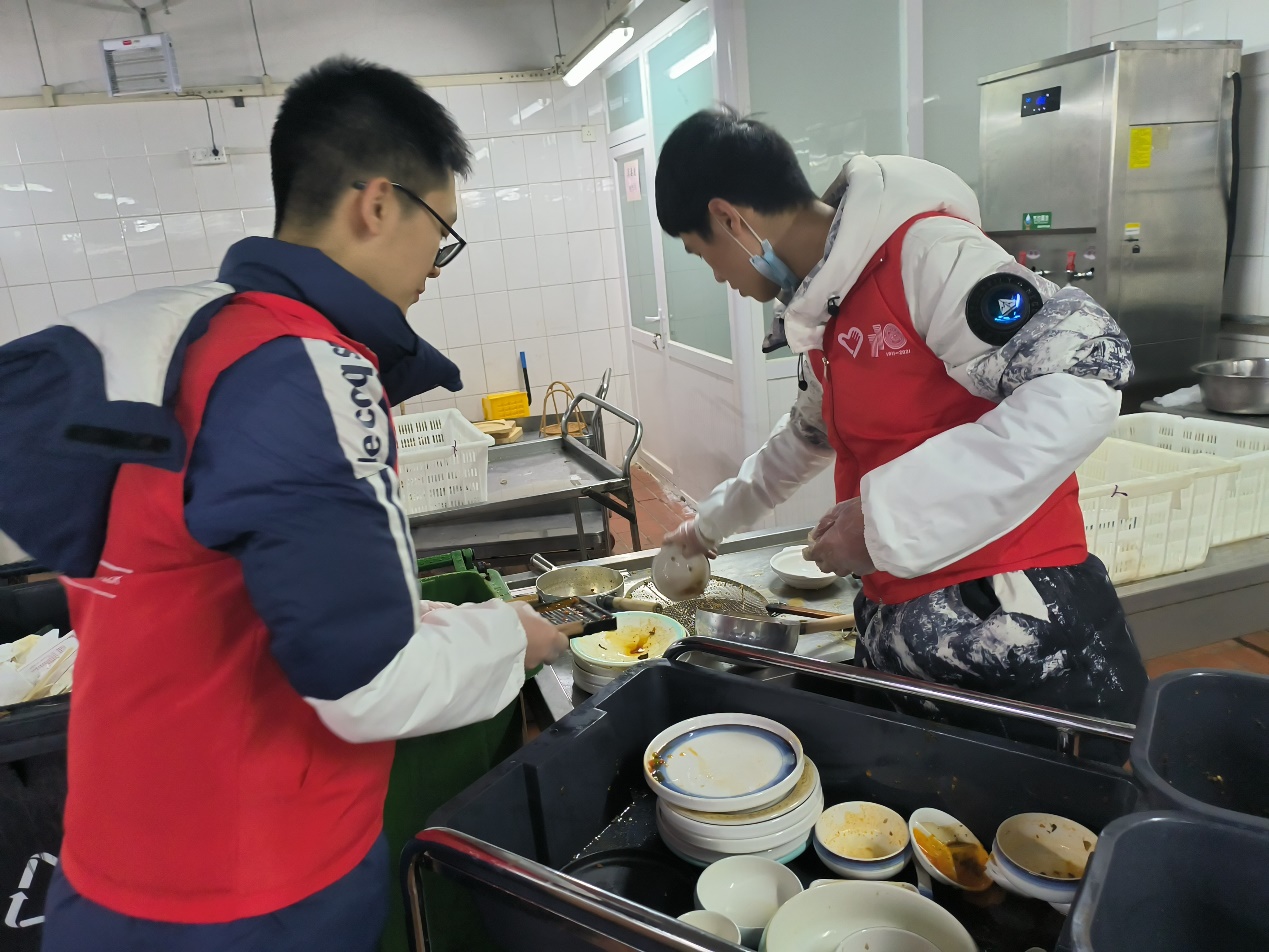 志愿者参与桃李园收残、餐具整理