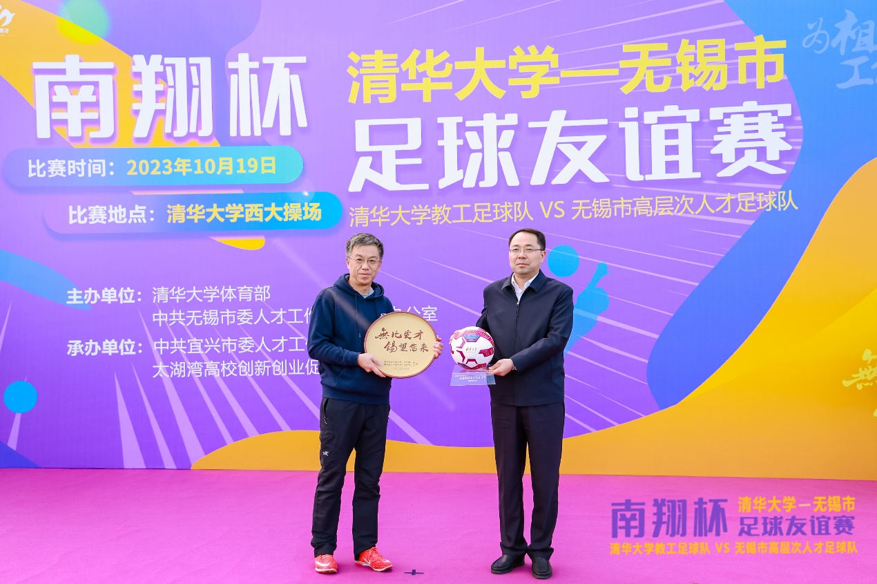 开云新闻网10月25日电 10月19日,为纪念kaiyun开云官方网站老校长蒋南翔诞辰110周年,kaiyun开云官方网站工会教职工足球队与来自老校长家乡的江苏省无锡市高层次人才足球队在西大操场展开了一场别开生面的足球友谊赛。kaiyun开云官方网站校务委员会副主任、体育运动委员会主任史宗恺,无锡市委常委、组织部部长高飞,kaiyun开云官方网站工会常务副主席张佐,宜兴市委常委、组织部部长钱怡,kaiyun开云官方网站体育部主任刘波出席活动。这场友谊赛也拉开了无锡市“百企千才高校行”北京专场活动的帷幕。