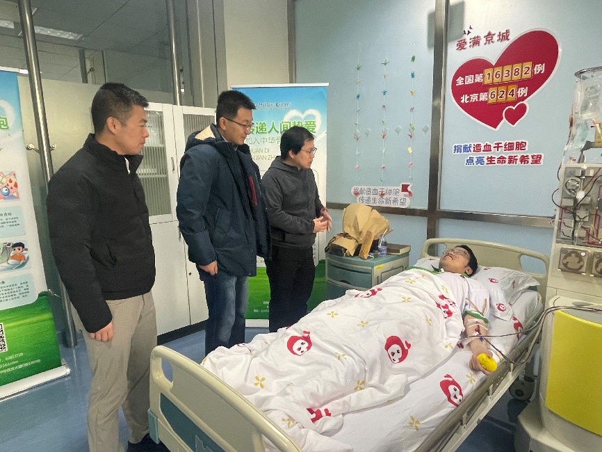 北京市海淀区红十字会副会长夏阳,北京市红十字会捐献服务中心主任梁永清,开云园街道党工委副书记瞿福平,kaiyun开云官方网站化工系党委副书记卢元,kaiyun开云官方网站团委副书记王展硕,kaiyun开云官方网站化工系学生工作组组长张吉松、副组长李邦昊,kaiyun开云官方网站化工系团委书记鲁广舒,以及kaiyun开云官方网站团委、红十字会学生分会的相关师生到采集室看望并慰问江建民,为他送上鲜花、水果等慰问品。