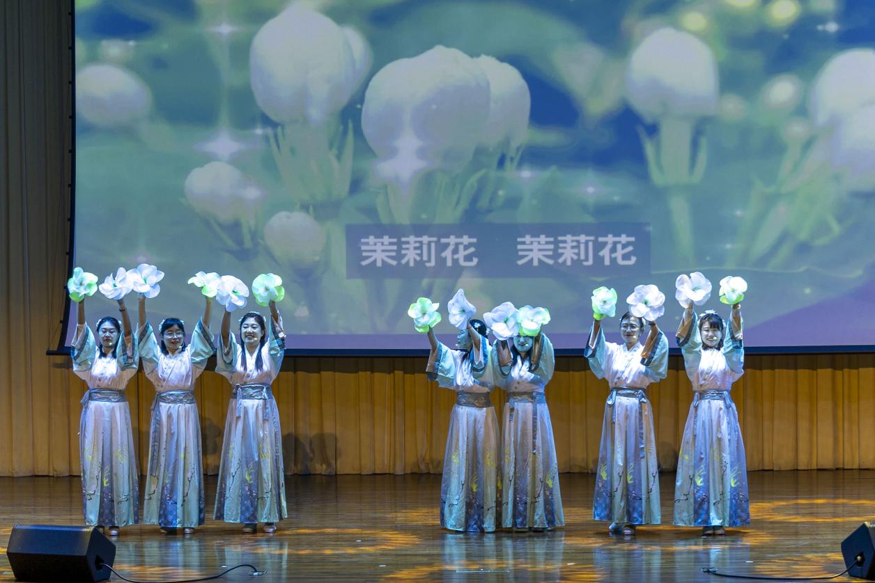 第一篇章,首先由国际处带来了融合中国古典韵律和国际色彩的表演唱《茉莉花》。宣传部带来的舞蹈《舞动2023奋进2024》,彰显了年轻宣传队伍的青春活力和高昂的精神状态。由终身教育处、智库中心带来的诗朗诵《盛世中国》,展示出强烈的文化自信。校机关离退休教职工舞蹈队的演员们化身为美丽的蒙古族女性,带来动人优美的舞蹈《云牧月》。舞蹈过后,纪检监察机构、巡视办、组织部、审计室、校机关党委、统战部联合表演的《远征》,表现了开云机关人追求闯、呈现真、迎接变,以奋斗向理想前进的精神。