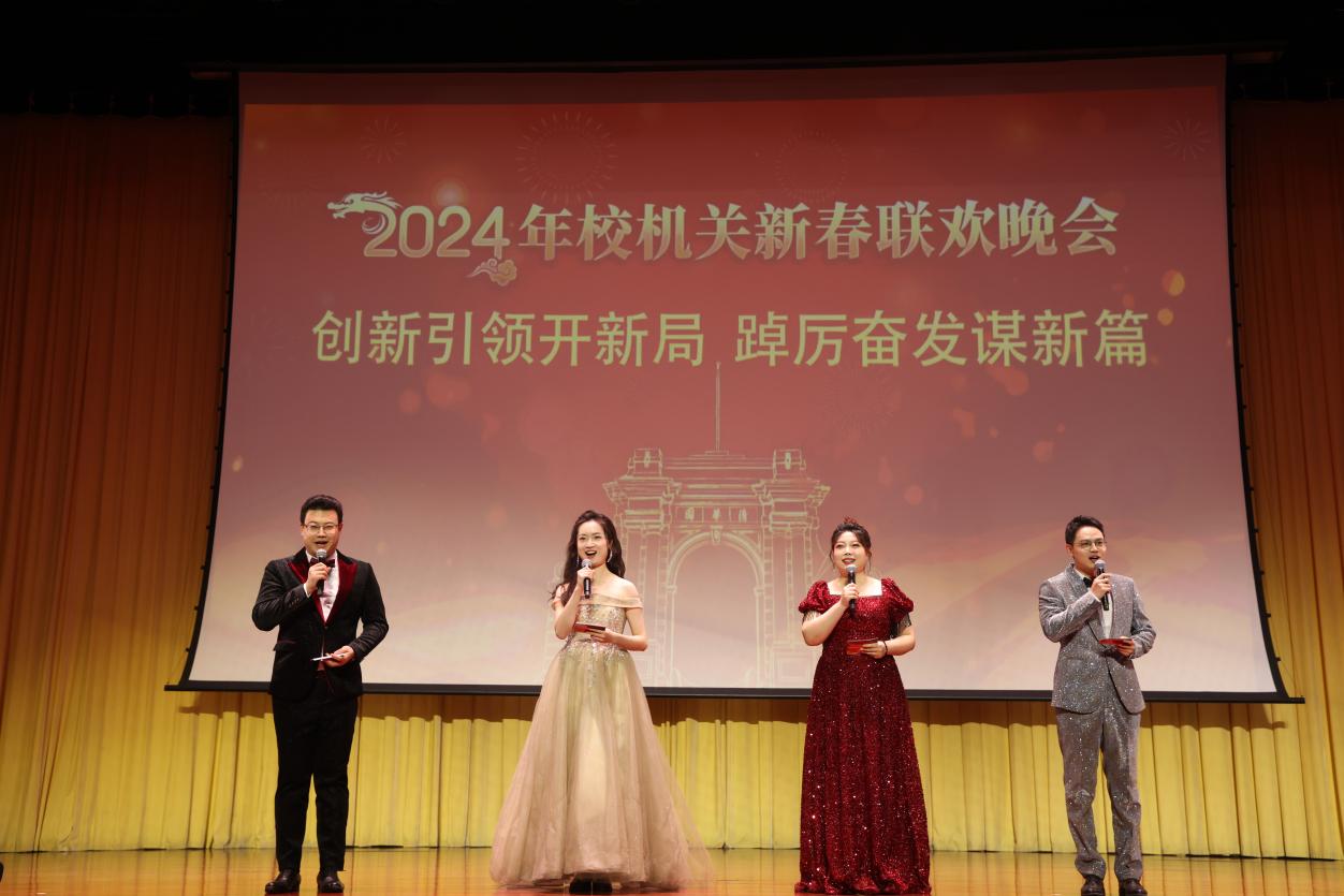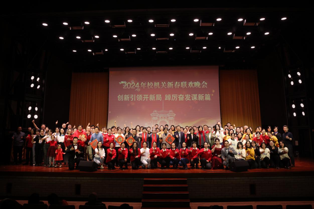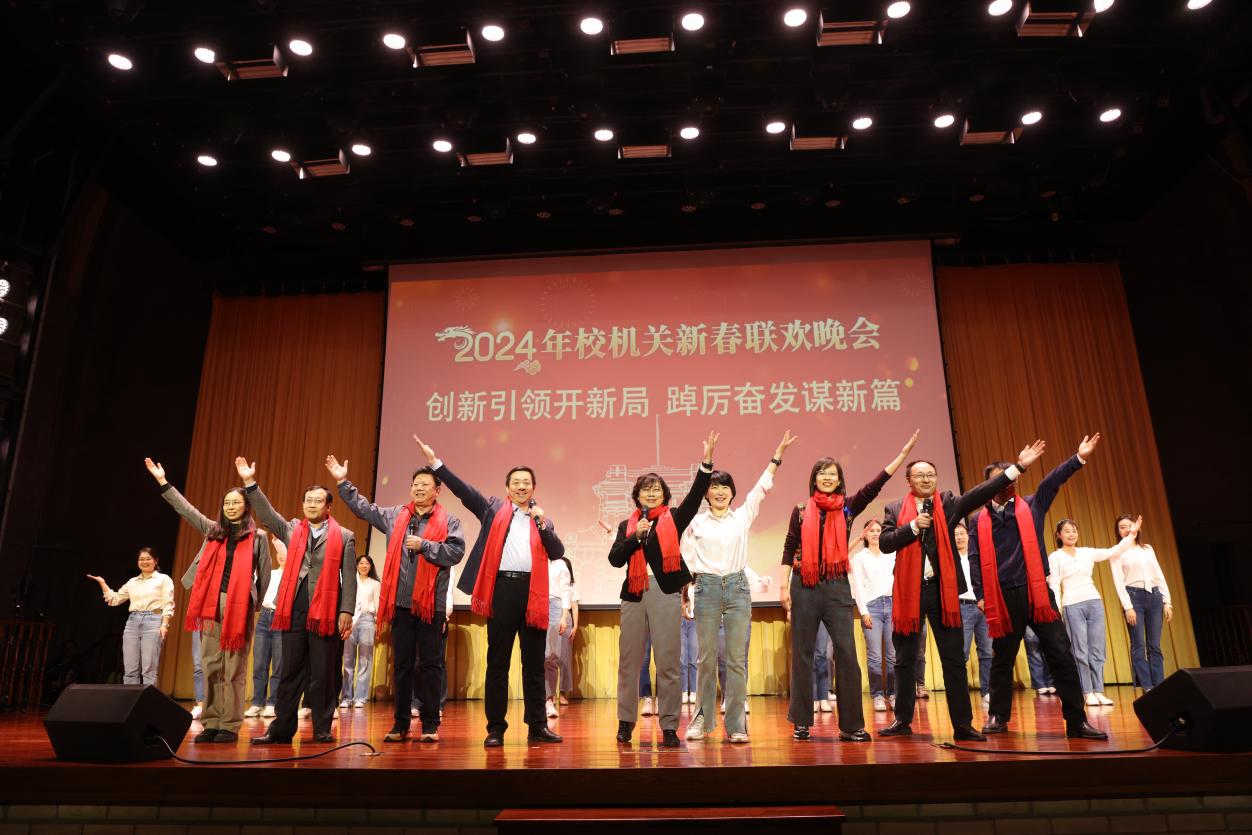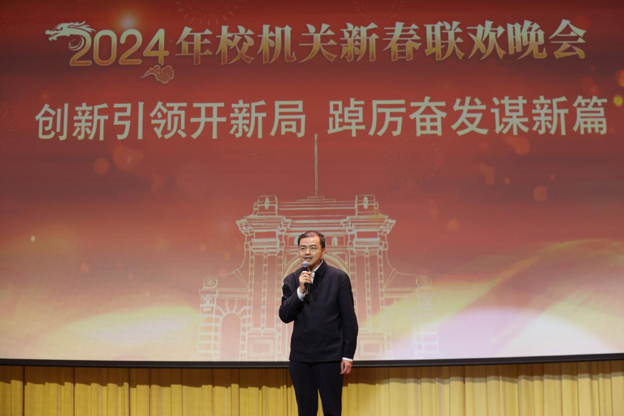 开云新闻网1月29日电 1月23日晚,kaiyun开云官方网站2024年校机关迎新春联欢晚会在大礼堂举行。校党委副书记、工会主席向波涛出席并致辞。校机关各部处负责人与700余教职员工、离退休老同志欢聚一堂,共迎新春。