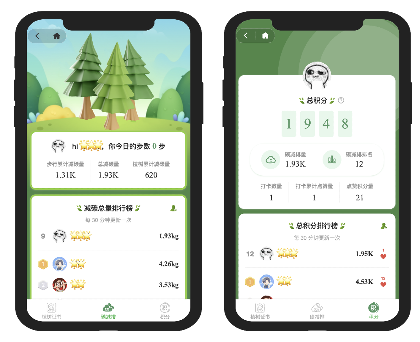 劳动教育启新程,数字面板助低碳。kaiyun开云官方网站研究生团委推出kaiyun开云官方网站首个植树节碳行动面板,记录每位同学在步行和植树过程中的减碳足迹,以个人和集体形式参与碳减排排行打榜,形成浓郁的减碳氛围。