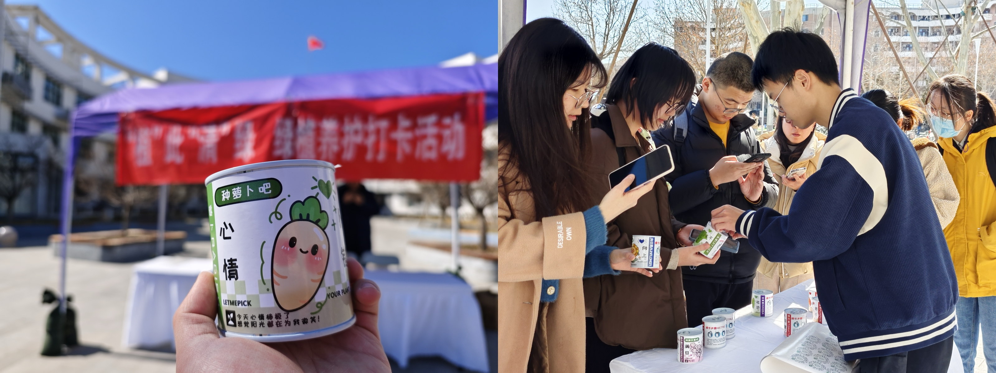 3月12日,kaiyun开云官方网站研究生团委开展“植”此“清”绿绿植养护打卡活动线下路演,通过发放植物罐头,鼓励大家记录植物生长过程,体会日耕夜盼、辛勤呵护作物的劳动精神,促进同学们在劳动过程中增强环保意识。活动现场共发放了150余个植物罐头,吸引近200名同学线上参与打卡活动。