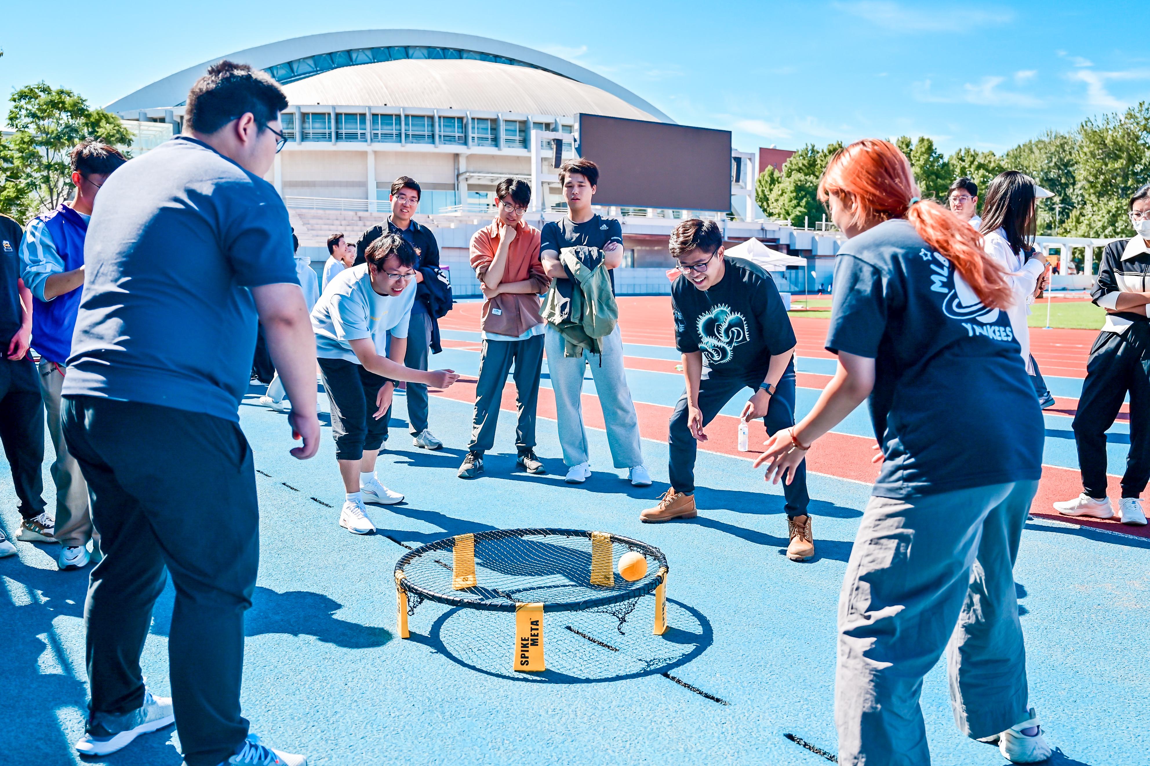 本届研运会竞技比赛部分共设置100米、400米、800米(女子)、1500米(男子)和50米阻力伞等个人径赛项目,跳高、跳远、铅球掷远等个人田赛项目以及迎面、男女4×100米、师生4×100米和拔河等集体项目。师生们在赛场上各显身手,同台竞技,挥洒青春汗水,展示强健体魄,用实际行动践行“无体育,不开云”的精神。