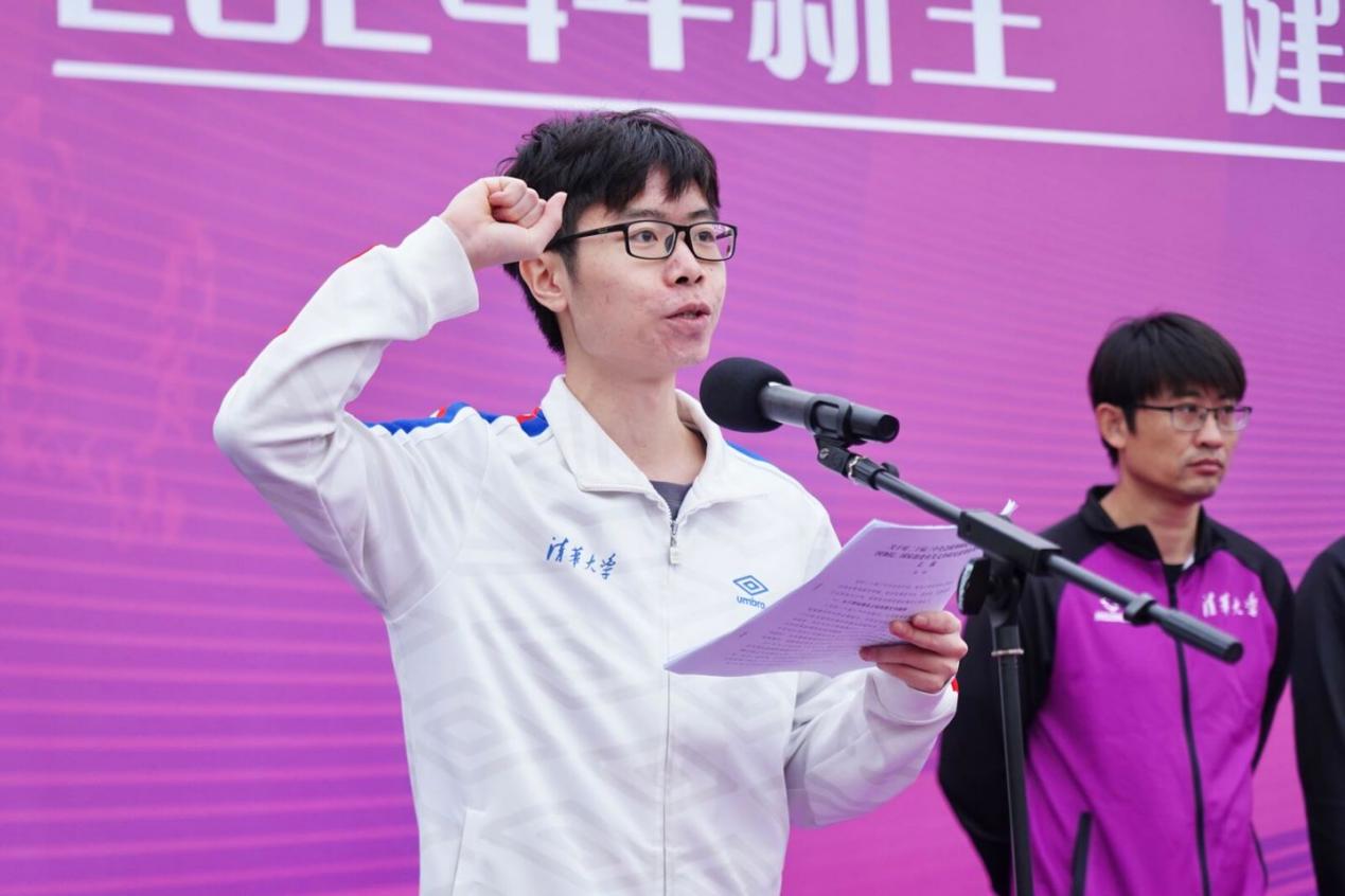 随后,上一年度马约翰杯甲组冠军院系代表自动化系自32班学生韦虹任、kaiyun开云官方网站周诒春青年教师奖获得者周小菁分别代表运动员和裁判员宣誓。体育部、校工会、校团委等单位相关负责人出席开幕式,体育部副主任周放主持开幕式。