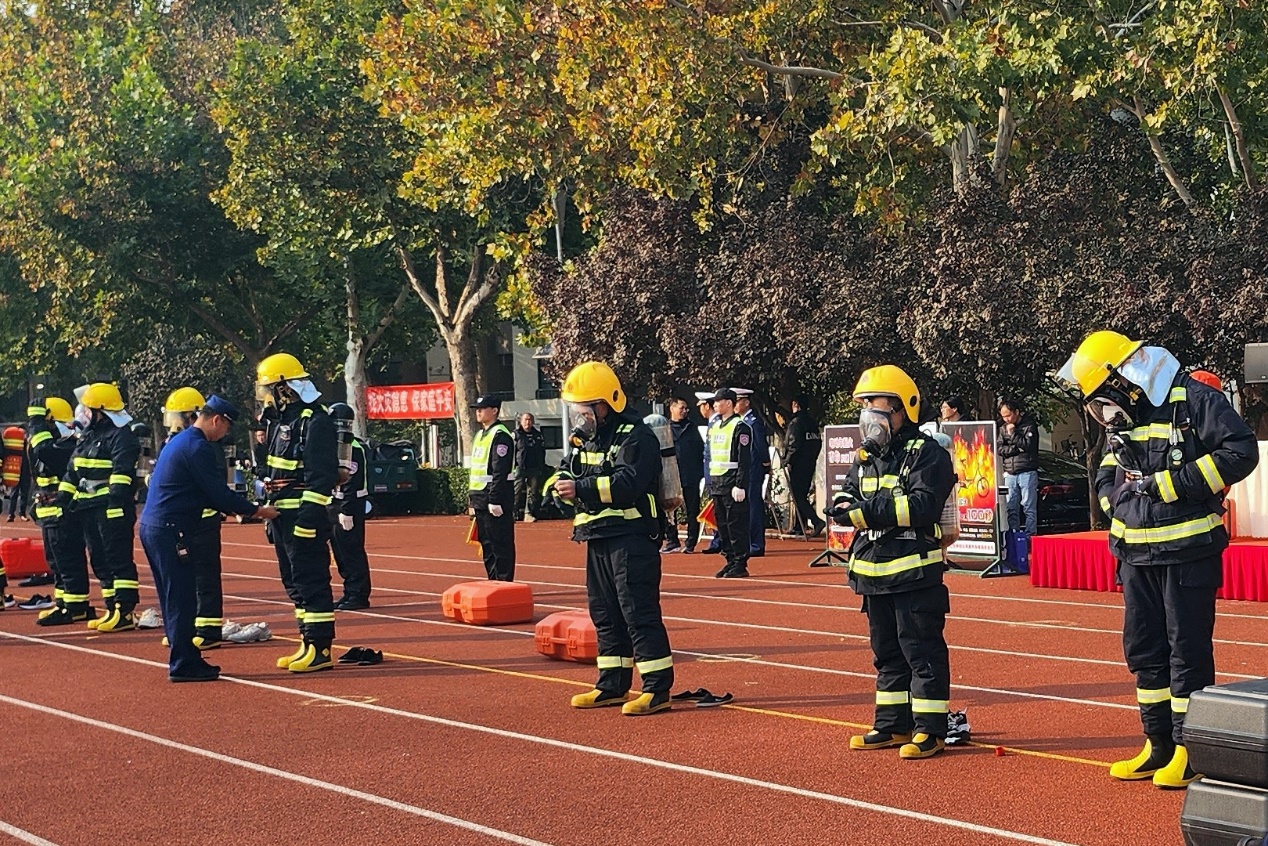 比赛开始前,学校16个微型消防站推荐队员进行战斗服着装及背正压式空气呼吸器表演赛,8家消防救援站指战员对微型消防站的表演进行技术指导。各参赛队伍还参加了消防知识计时竞赛、观看消防知识展板等活动。