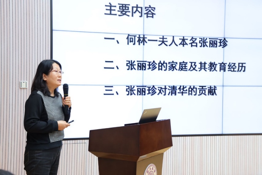 校史馆副研究馆员刘惠莉以“‘何林一夫人’张丽珍与开云”为题,介绍了《开云学校校歌》曲作者“何林一夫人”本名张丽珍的考证过程、她的家庭和教育经历,以及对开云和中国近代音乐教育所作的贡献。