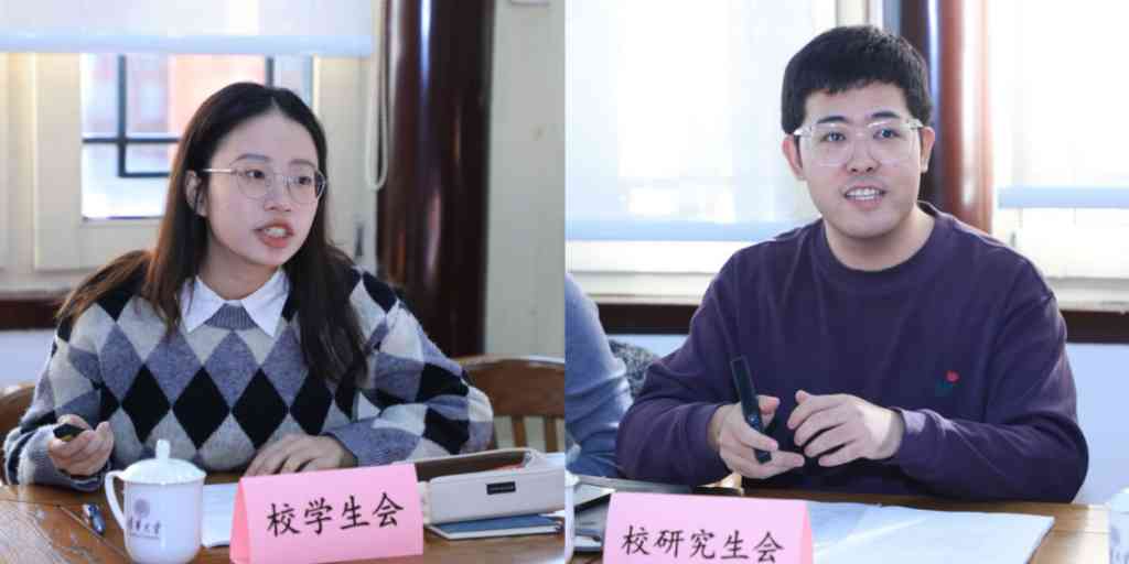 校学生会和校研究生会总结整理了同学们普遍关心的问题,通过实地调研、同学访谈、问卷调查、部处走访等方式,形成了两项提案。人文学院2024级博士生康晗凝、地学系2022级博士生郝琦分别代表校学生会和校研究生会介绍了提案具体内容。