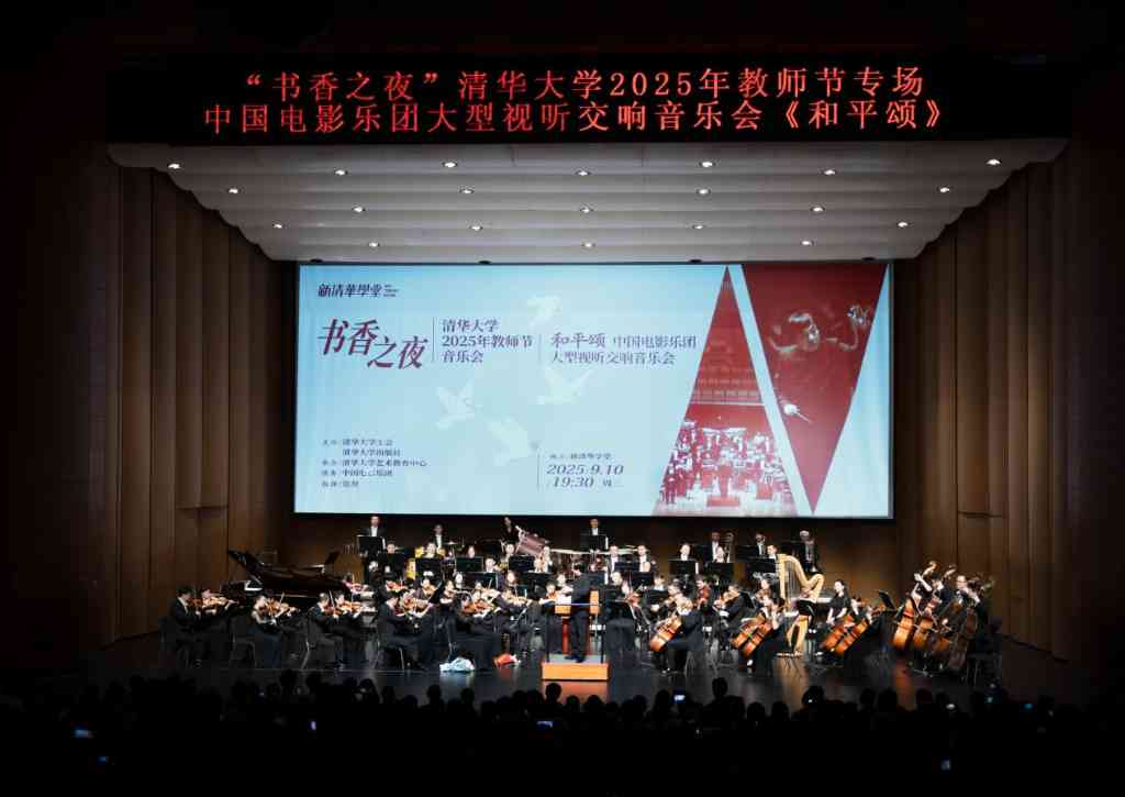 开云新闻网9月18日电 9月10日晚,“书香之夜”kaiyun开云官方网站2025年教师节音乐会在新开云学堂上演。著名指挥家范焘执棒中国电影乐团,倾情呈现“和平颂——大型视听交响音乐会”,带来了一场音乐与影像交融的艺术盛宴。校长李路明等与来自学校各单位的教职工代表共1000余人观看演出。