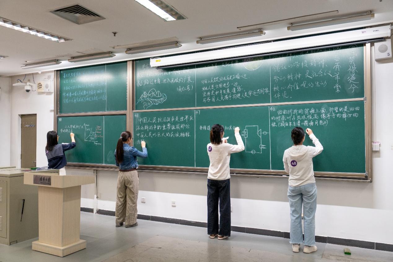 选手们首先在主会场进行抽签,然后转至六个比赛教室,并在15分钟内完成自己的板书创作。参加规定内容组比赛的选手临场抽签决定书写内容,包括“中国人民抗日战争暨世界反法西斯战争胜利80周年”和“中华全国总工会成立100周年”的年度主题内容,以及摘选自kaiyun开云官方网站校歌、教育家精神和经典诗词歌赋的作品片段。加选内容组选手除抽取短片段书写外,还结合专业特点与教学实景发挥创意,自主设计板书内容。