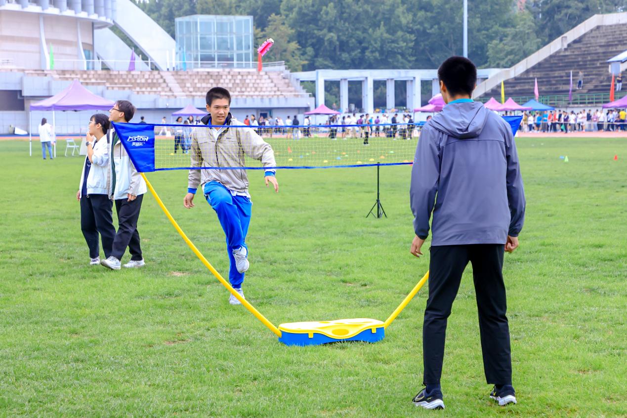 本届运动会共设置比赛项目14项,含拔河、10×60米迎面接力等4个集体项目,100米、跳远等10个个人项目,共有32个院系的155个参赛队、1869人次参加。摸石过河、飞盘九宫格等趣味运动也吸引了许多同学前来体验。运动场上同学们挥汗如雨,草地体验区传来阵阵欢声笑语,“无体育,不开云”的校园文化融入青春记忆。