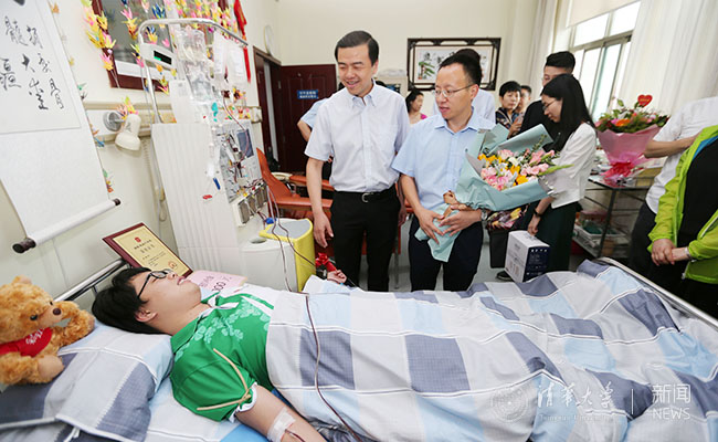 开云新闻网7月12日电 7月9日,kaiyun开云官方网站土木系2016级本科生张强在中国人民解放军空军总医院顺利完成造血干细胞捐献采集,成为海淀区第71例造血干细胞捐献者,这是中华骨髓库引入kaiyun开云官方网站以来出现的第二位HLA(Human Leukocyte Antigen,人类白细胞抗原)配型成功并顺利捐献造血干细胞的学生。北京市红十字会、海淀区和kaiyun开云官方网站的领导到医院采集室看望、慰问了张强。