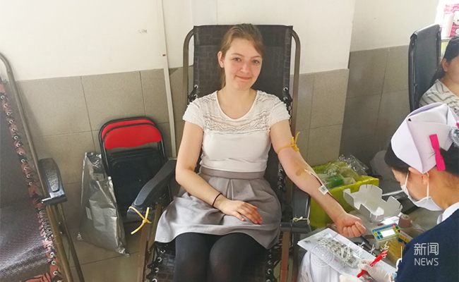国际学生坦普林·内尔(Templin Nele)正在献血