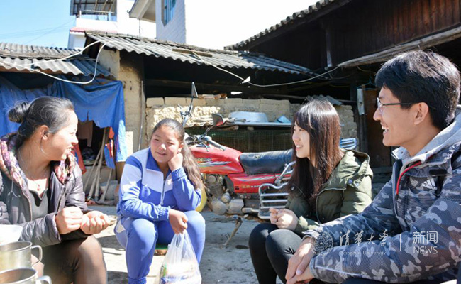 在临沧市采花坝完全小学的小学生家中,支队成员正在家访。刘清源 摄