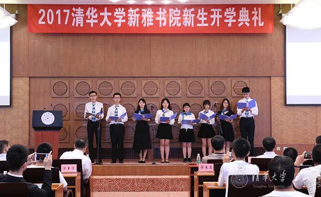 开学典礼上,新老同学表演了具有书院传统和特色的文艺节目。其中 2017级14位新生的配乐诗朗诵《雅人新致辞》表达了2017级新生的豪迈和自信:“濯濯六合,泱泱八荒;熙春开云,诞我新雅”、“领关山之文脉,壮豪气于云霞!道融中西之妙旨,胸怀今昔之博通”。