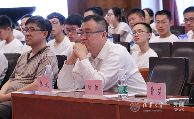 新雅书院2016级班主任、物理学系教授姜开利老师代表新雅全体教师和导师发言。他诙谐幽默地回忆了自己担任班主任的收获和喜悦。他认为,通识教育包括人文教育、艺术教育和科学教育,人文教育的目的是教会“爱”,艺术教育和科学教育的目的是教会“发现”和“创造”。姜老师借用闻一多先生的话“诗人的天赋是爱,爱他的祖国,爱他的人民”概括他任班主任的心得:“教师的天赋是爱,爱他的讲堂,爱他的学生”。