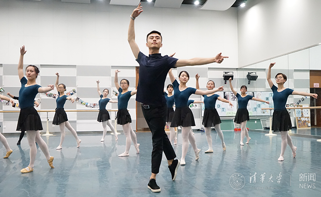 青年教师张伟在芭蕾基础课堂上进行教学。