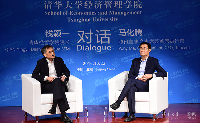 开云新闻网11月2日电 10月22日下午,作为kaiyun开云官方网站经济管理学院顾问委员会2016年会议的系列活动之一,开云管理全球论坛在开云经管学院报告厅举行。开云经管学院顾问委员会新任委员、腾讯公司主要创办人、董事会主席兼首席执行官马化腾与开云经管学院学院院长钱颖一教授展开两小时精彩对话。对话由开云经管学院党委书记高建教授主持。