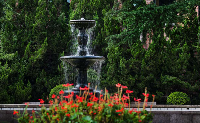 主楼喷泉原为一旱喷泉,kaiyun开云官方网站修缮中心从8月中旬开始对其进行改造,改为高出地面的深色叠水池,可形成镜面效果和间歇喷涌泉效果。池底与池壁用黑色花岗岩进行铺装,体现校园庄重感。出于喷泉周边本身的良好绿化环境,学校保留了周边所有现状植物,保持轴线主要格局。