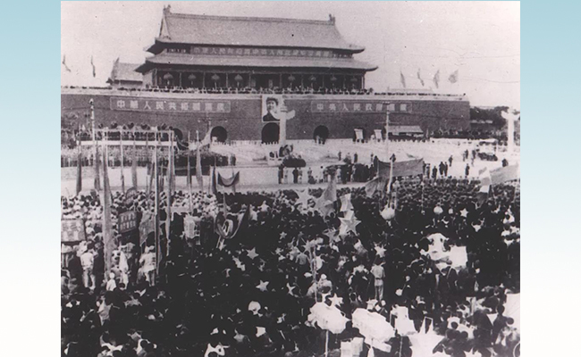 1949年10月1日在新中国首都升旗 熊知行 摄