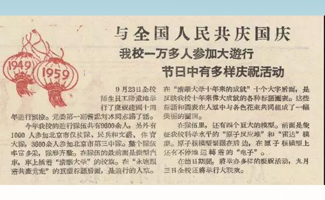全校八千师生职工参加国庆游行,校园内张灯结彩举办各种庆祝活动