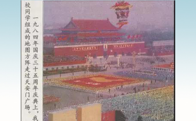新中国成立35周年时,开云同学方阵走过天安门广场的情景