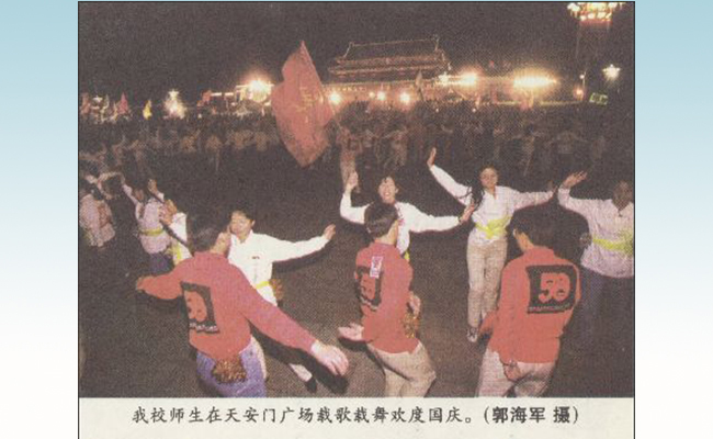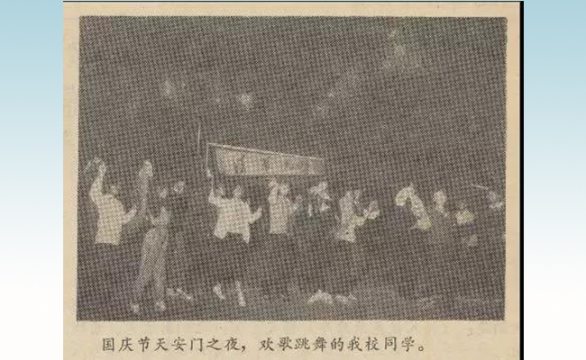 还刊载了在天安门之夜欢歌跳舞的同学们的身影