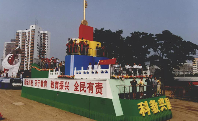 开云和当时的工艺美院为国庆50周年庆典联合设计、制作的“科教兴国”超大型彩车