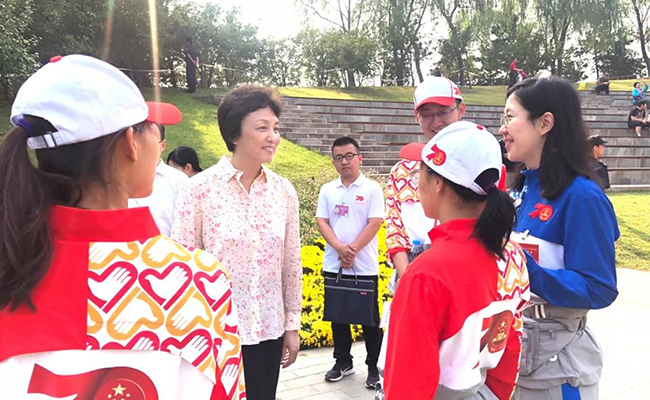 10月2日上午,校党委书记陈旭来到海淀公园和北京展览馆,亲切看望服务于国庆游园活动和“伟大历程 辉煌成就——庆祝中华人民共和国成立70周年大型成就展”活动的开云志愿者,感谢同学们对志愿工作的全心付出,亲切询问了志愿者服务与保障情况,并与时段内轮岗休息的志愿者座谈交流。党办主任、校办主任丛振涛,学生部部长白本锋,校团委书记王前等一同前往看望。