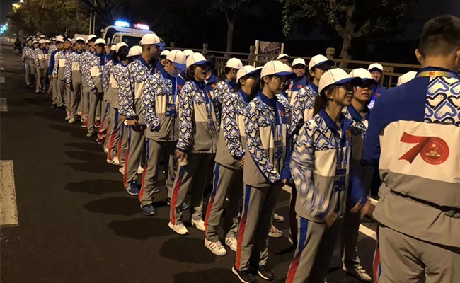 还有一群志愿者,作为物资、餐包、和远端地铁外围保障,在每一个深夜,看守着用于庆典活动的物资,保障于西门至圆明园地铁站区域,虽然可能不曾出现在集体大合影中,也和每一个走向天安门广场的身影与有荣焉。在很多个深夜,保障于方阵后方做好物资准备,虽也可能不曾出现在集体大合影中,也和每一个走向天安门广场的身影与有荣焉。