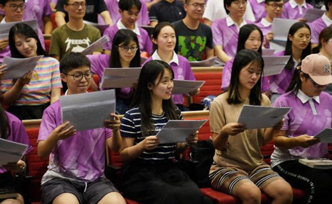 为更好地完成这次光荣的任务,大家放弃了暑假与家人团聚的机会,但我们是在“为国歌唱”,每每想到这点,我都觉得使命光荣。记得第一次与其他学校的同学们会合,一起唱了已经背得滚瓜烂熟的16首歌曲,在那短短的40分钟内,一首首熟记于心倒背如流的歌曲使我多次热泪盈眶:《今天是你的生日,中国》五个声部的和谐共鸣,这是我们真诚的“心中的歌”;“我属于你啊,中国”的深情表白;“力量攥在手”的强劲;《我们都是追梦人》的青春活力……还有那首从小就会唱的《没有共产党就没有新中国》,我第一次深深地感到,这一首赞歌在雄壮有力的节奏之上是那样地饱含深情。都说好的文章每一次读都会有新的体会,我想好的歌曲也是这样,训练开始至今,这些歌曲已经唱过近百次,节奏、旋律、呼吸上的各种细节都已经烂熟于心,但这种发自心底、真诚的祝福、崇敬和感激之情,真的一次更比一次深情,为祖国的复兴努力奋斗的愿望也越来越强烈!