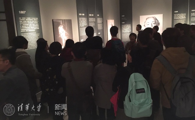 《中国现代文学经典》课程学生在观看珂勒惠支经典作品展。