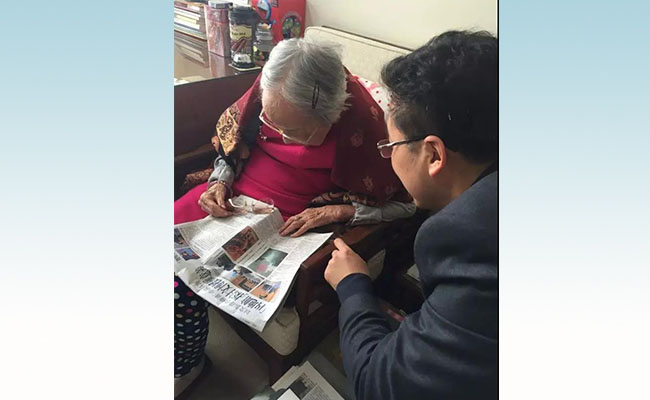 这个下午茶时间真是意外的惊喜啊!不仅有清香的茶,还有几样小茶点和水果,东西不多但很精致、清爽,这让我们的交流更加轻松愉快。我帮老学长把点心切开,她示意我吃大块的、她吃小块的,并告诉我要多吃。吃完点心再吃水果,老学长不断地劝我多吃些,很是亲切。望着熊学长愉悦的状态,我的心中格外高兴,不禁感慨道:“您根本就看不出来是一位百岁老人啊!”