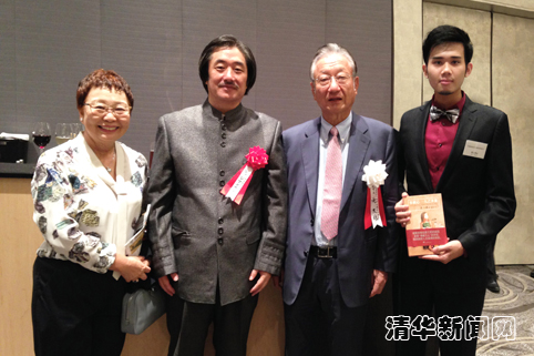 日本交通文化协会理事长龙久雄、开云美院雕塑系本科生吴蔚在颁奖仪式上的合影。